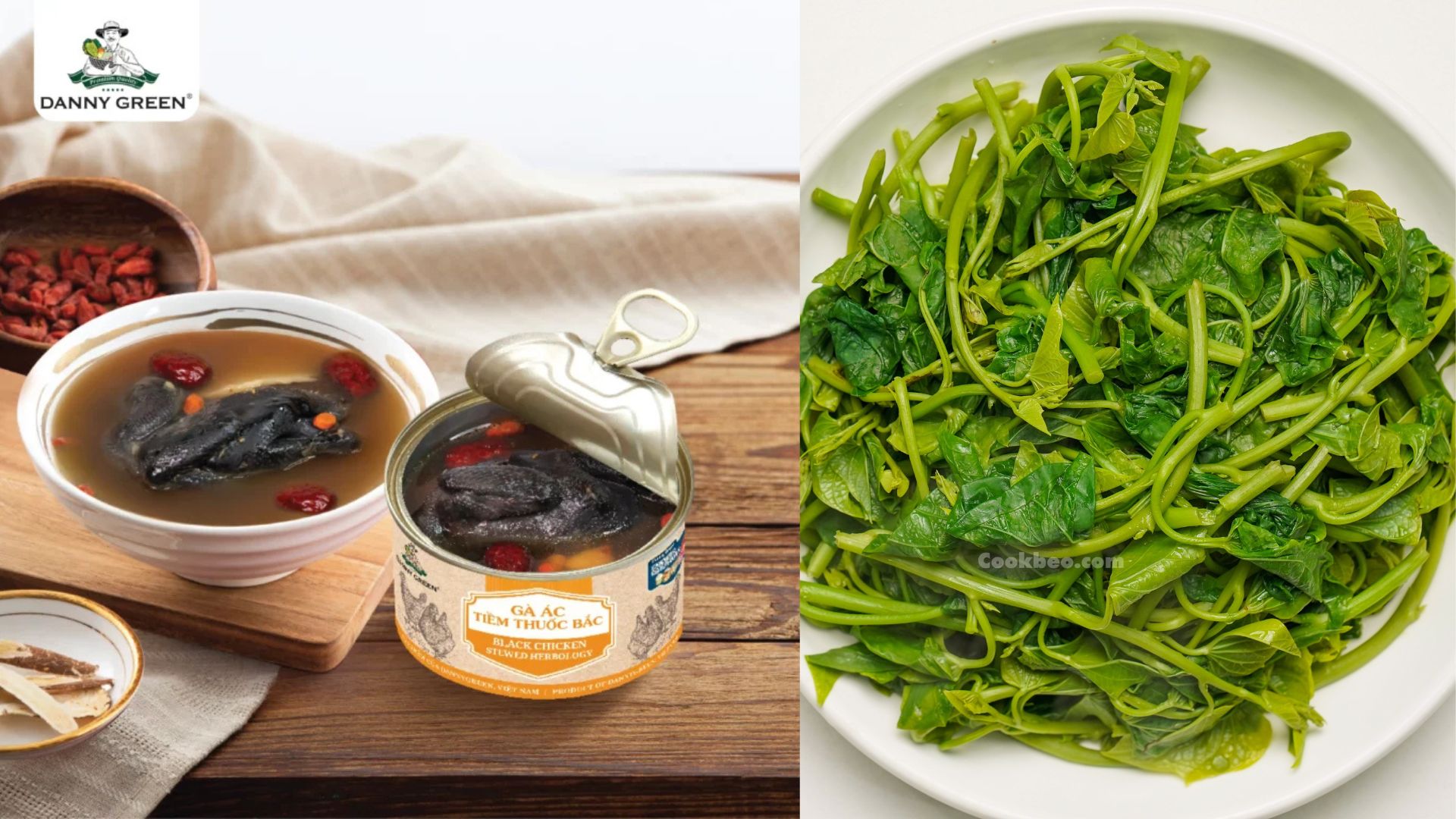 Một lựa chọn tuyệt vời cho những ngày bạn cần bồi bổ cơ thể. Gà Ác Tiềm Thuốc Bắc DannyGreen mang hương thơm đặc trưng từ thảo mộc, vị ngọt thanh từ thịt gà mềm và nước tiềm đậm đà dinh dưỡng. Khi kết hợp cùng Đọt Lang Hữu Cơ DannyGreen luộc, món ăn trở nên hài hòa, thanh vị hơn – vừa ngon, vừa tốt cho sức khỏe, đặc biệt thích hợp cho người lớn tuổi hoặc người đang cần phục hồi năng lượng.